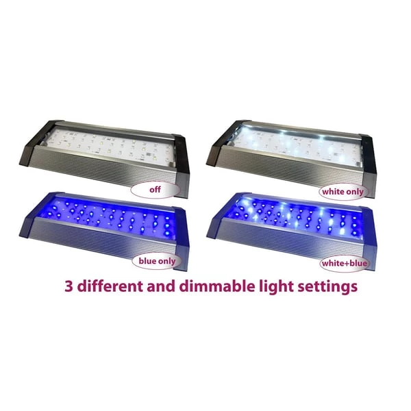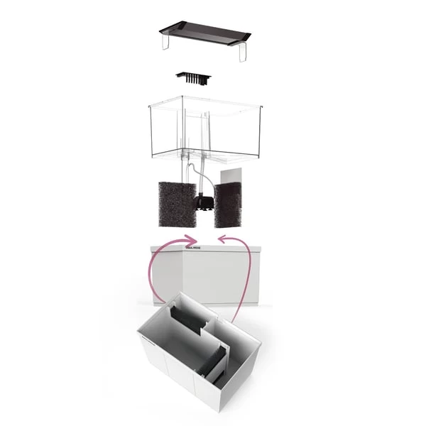 Das Armatus XS wird mit LED Beleuchtung und Pumpe geliefert. Die LED Beleuchtung kann mit 2 Lichtkanälen (weiß und blau) inkl. Dimmung individuell angepasst werden. Die integrierte Förderpumpe dient ebenfalls als Strömungspumpe und sorgt für ausreichende Wasserumwälzung. Ein eingebauter Ablaufschacht stellt einen zuverlässigen Oberflächenabzug sicher.