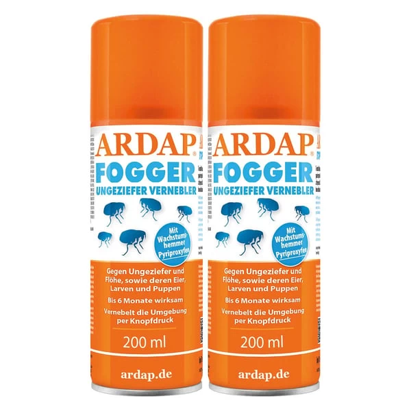 Der ARDAP Fogger enthält die Wirkstoffe Permethrin, Pyrethrum und Pyriproxyfen sowie Piperonylbutoxid als Synergist. Permethrin und Pyrethrum töten das Ungeziefer schnell und zuverlässig ab, während Pyriproxyfen (Wachstumshemmer) den biologischen Entwicklungszyklus unterbricht. Somit werden alle Stadien der Entwicklung über 6 Monate lang wirksam bekämpft.