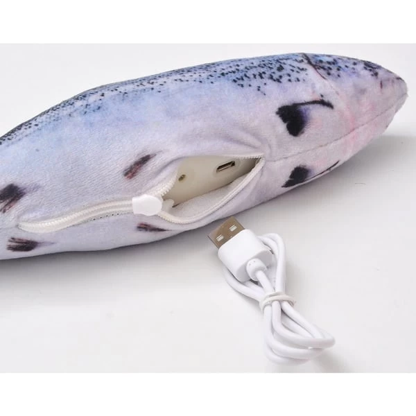 Die Zappelfische von Aumüller wecken den natürlichen Jagdtrieb und sorgen für Beschäftigung. Eine fotorealistische Nachbildung aus schmuseweichem und robustem Plüsch. Der Fisch hat einen integrierten Akku mit USB-Anschluss und Ein-/Ausschalter. Der Bewegungssensor startet erst bei Berührung. Gefüllt mit Katzenminze und Silver Vine.