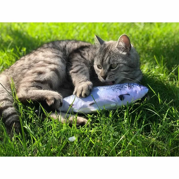 Die Zappelfische von Aumüller wecken den natürlichen Jagdtrieb und sorgen für Beschäftigung. Eine fotorealistische Nachbildung aus schmuseweichem und robustem Plüsch. Der Fisch hat einen integrierten Akku mit USB-Anschluss und Ein-/Ausschalter. Der Bewegungssensor startet erst bei Berührung. Gefüllt mit Katzenminze und Silver Vine.