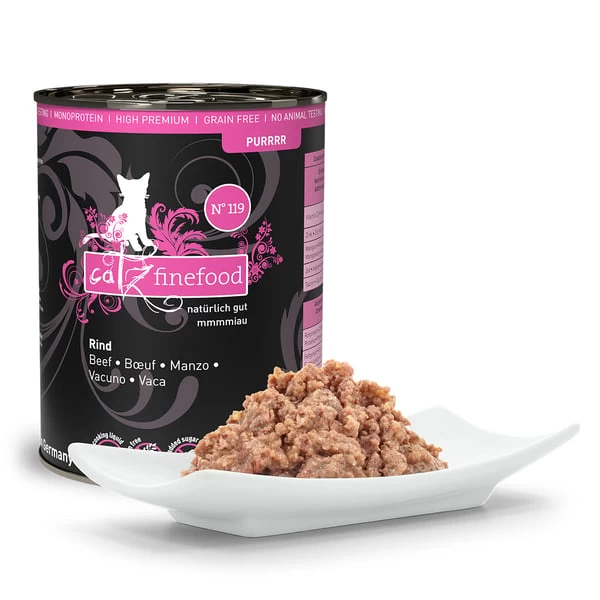 catz finefood möchte Katzen und ihre Menschen glücklich machen. Und was gibt es Schöneres als zufriedene Minitiger, die sich nach einer Mahlzeit genüsslich putzen und dann ein schnurrendes Schläfchen halten? Deshalb hat catz finefood PURRRR ein Alleinfuttermittel für Katzen entwickelt, in dem alles drin ist was dein Liebling braucht und super gut schmeckt. Bei der PURRRR-Linie hat catz finefood besonders an Sensibelchen und Tiere mit besonderen Ernährungsbedürfnissen gedacht: die Zutatenliste von catz finefood PURRRR ist kurz und ohne Schnickschnack.