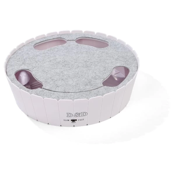 Das interaktive Katzenspielzeug bietet Ihrer Samtpfote eine Mäusejagd, der sie nicht widerstehen kann. Die durch die Öffnungen auf Oberseite sichtbare Spielzeugmaus dreht sich in zwei verschiedenen Geschwindigkeitsstufen im Kreis und fördert so den natürlichen Jagdtrieb der Katze. Somit finden Sie garantiert die richtige Geschwindigkeit für Ihren Liebling, egal wie aktiv oder alt dieser ist. Dank der mit Filzstoff überzogenen Oberfläche ist das Katzenspielzeug schonend zu Katzenpfoten und -krallen.