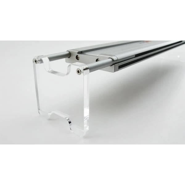 Mit den beiliegenden Edelstahlschrauben wird das Set mit dem matrix Inline-Adapter-System verbunden. Die Breite kann exakt auf die Aquariumlänge angepasst und fixiert werden. Der Lichtaustritt der matrix befindet sich mit diesem Adapter-Set ca. 60 mm über dem Aquariumrand.
