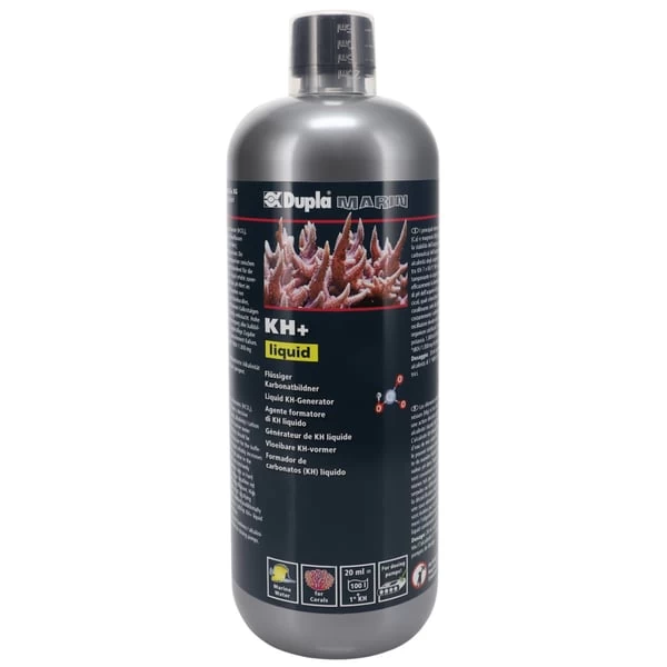 Dupla Marin KH+ liquid fördert das Wachstum aller kalkbedürftigen Organismen wie Steinkorallen, Kalkröhrenwürmer, Muscheln und verschiedener Kalkrotalgen. Für Dosierpumpen geeignet. Enthält 5.000° dKH 1.000 mg K. Die Hauptelemente Hydrogencarbonate (HCO3), Calcium (Ca) und Magnesium (Mg) beeinflussen entscheidend die Wasserstabilität (ph-Wert, Alkalinität / Karbonathärte) im Riffaquarium. Die KH / Alkalinität sollte im Meerwasseraquarium zwischen KH 7 und KH 9 °dH liegen und ist entscheidend für die Pufferkapazität im Meerwasser. KH+ liquid erhöht zuverlässig die Karbonathärte und puffert den pH-Wert im Meerwasseraquarium ab. Karbonate werden von vielen kalkzehrenden Organsimen wie Steinkorallen, Muscheln, Kalkröhrenwürmer, verschiedenen Kalkrotalgen sowie durch biogene Entkalkung ständig verbraucht. Hohe pH-Schwankungen und eine Unterversorgung aller kalkbildenden Organismen werden durch regelmäßige Zugabe verhindert. Enthält zusätzlich das Spurenelement Kalium. Dosierung: 20 ml erhöhen die Karbonathärte /Alkalinität um 1 °dKH / je 100 l.