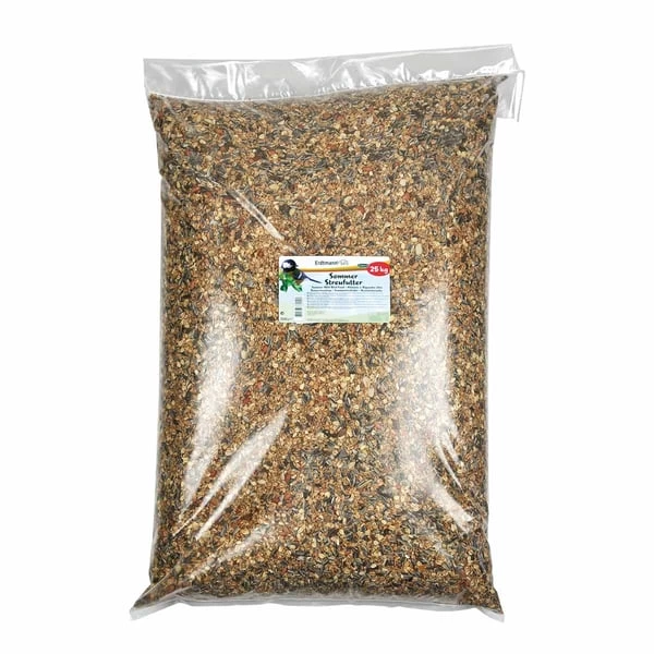 Der Futtermix besteht aus verschiedenen Getreidesorten, Erdnüssen und Sonnenblumenkernen und liefert eine Menge an Vitaminen, Proteinen und Fetten, was zusammen für einen ausgewogenen Energiegehalt sorgt. Die Mischung wird besonders gern von Meisen, aber auch Drosseln, Zeisigen und Finken gefressen. Besonders gut geeignet für das Füttern in der warmen Jahreszeit.