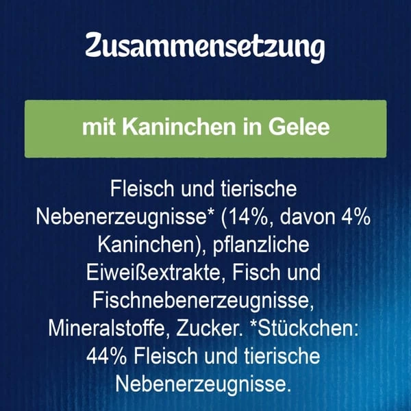 *Stückchen: 44% Fleisch und tierische Nebenerzeugnisse.