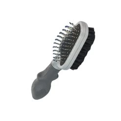 Die Seite mit (weichen) Schweineborsten ist eine ausgezeichnete, universell einsetzbare Bürste für nahezu alle Felltypen, um Schmutz auszubürsten und dem Fell einen natürlichen, geschmeidigen Glanz zu verleihen. Die Seite mit (härteren) Drahtzinken eignet sich bestens, um das Fell langhaariger Vierbeiner von Knoten und Schmutz zu befreien und die Haut zu massieren.