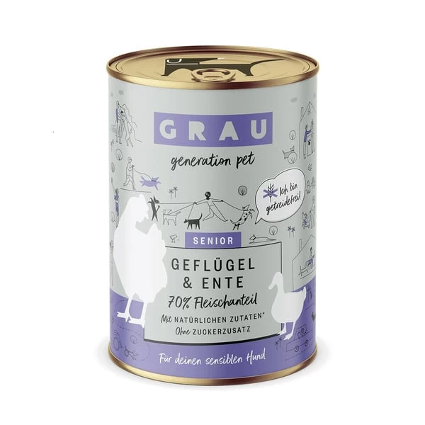 53% Geflügel (Geflügelherzen, Geflügelfleisch, Geflügelleber, Geflügelmägen, Geflügelhälse, Geflügelfett), 28% Brühe, 17% Ente (Entenherzen, Entenmägen, Entenhälse, Entenkarkassen), 1% Rübenfasern, 1% Mineralstoffe