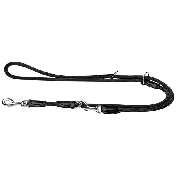 Verstellbare Führleinen sind vielseitig und flexibel. Die 3-fach verstellbare Führleine FREESTYLE bringt noch dazu die originelle Tau-Optik mit und ist besonders strapazierfähig. Mit einer verstellbare Führleine sind Sie immer auf alles vorbereitet, denn Sie können die Länge der Leine mühelos anpassen. Ob kurz oder lang, die 3-fach verstellbare Führleine FREESTYLE ist immer für Sie da! Die Ringe und Karabiner sind sorgfältig und sicher an das Tau angebracht, so dass Sie die gewünschte Länge der Leine mit wenigen Handgriffen ganz unkompliziert ändern können. Dank des vielseitigen Materials ist die Außenseite der 3-fach verstellbaren Führleine FREESTYLE weich und geschmeidig, liegt deswegen angenehm im der Hand. Für die inneren Werte sorgt ein Kern aus festem Polyamidseil, der die Leine sehr stabil macht. Das witterungsbeständige Material lässt die Leine bei jedem Spaziergang dem Wetter trotzen.