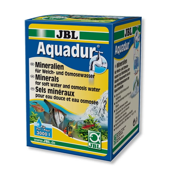 Zur Einstellung idealer Wasserwerte für Süßwasser-Aquarien. Zur Aufhärtung von weichem Wasser. Zur Mineralienzugabe zu Osmosewasser. Konstante Wasserwerte: Fachgerechtes Anheben der Karbonathärte und Stabilisierung des pH-Wertes. Verhindert Säuresturz. Gesundes Wasser, gesunde Fische: Schutz vor Mineralmangel bei Fischen durch Mineralsalzmischung. Optimale Dosierung durch beiligenden Messlöffel. Erhöht ca. 3000 l um 1° KH und 1,6° GH. Lieferumfang: 1 Dose Aquadur, 250 g. Anwendung: 1 Messlöffel (18,75 g)/100 l Wasser ergibt eine Erhöhung um etwa 2,5 ° dKH.