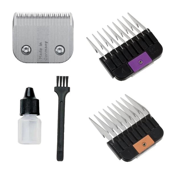 – Präzisionsgeschliffener Vollmetall-Schneidsatz mit polierter Oberfläche und exaktem Kreuzschliff für garantiert hohe Lebensdauer mit 1 mm Schnittlänge und feiner Zahnteilung – perfekt zum Entfernen von Verfilzungen und zum Arbeiten mit Aufsteckkämmen.