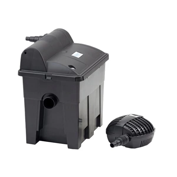 BioSmart Set 24000: Teichgröße von 24 m³ (bzw. bis zu 12 m³ bei Fischbesatz), 60 Watt Filterpumpe (Leistung 5500 l/h), integriertes 24 Watt UVC-Vorklärgerät, 3 m langer Schlauch