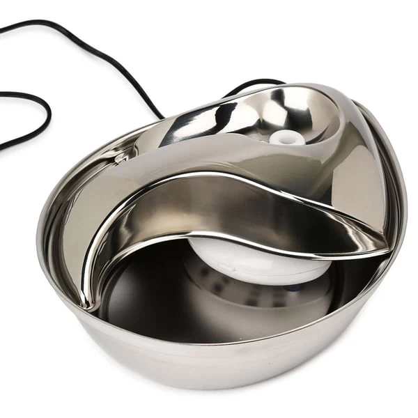 Der Edelstahl Trinkbrunnen Rain Drop Style 2,8 l wird produziert von Pioneer Pet und ist gleichermaßen geeignet für Katzen und Hunde. Er besteht aus hochwertigem Edelstahl, der sich einfach, bequem und hygienisch rein säubern lässt – auch in der Spülmschine.