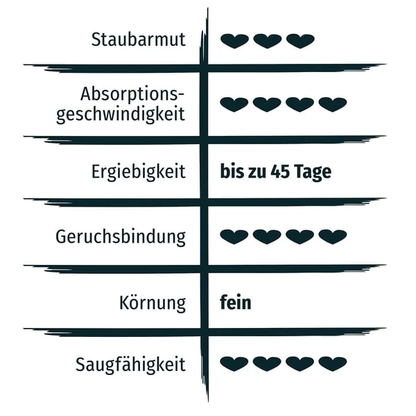 PRIMOX® KLUMPSTREU Babypuder-Duft nimmt es mit allem auf. Nun ja, vielleicht nicht mit einem Wasserfall, aber ganz bestimmt mit den täglichen Ausscheidungen deiner Katze. Und dank optimaler Feuchtigkeitsbindung haben schlechte Gerüche keine Chance – stattdessen duftet es dezent nach Babypuder. PRIMOX® KLUMPSTREU Babypuder-Duft kann sehr sparsam eingesetzt werden, denn die naturbelassenen Tonkügelchen erzeugen kleine, gut zu entnehmende Streuklumpen. Ach, und weil du die Toilette seltener komplett reinigen musst, hast du auch mehr Kuschelzeit mit deinem Liebling.