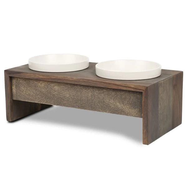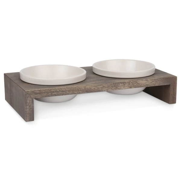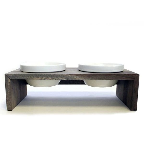Der Gohan Doppelnapf aus Vollholz besticht durch sein Stylisches Design, urwüchsig und mit rauem Charme. Die runden Porzellanschalen können in der Spülmaschine gereinigt werden. Die runden Porzellanschalen liegen einfach in den Öffnungen. Ein etwas stärkerer Rand hält sie an ihrem Platz. Kleine Silikonpunkte verhindern ein Verrutschen oder Kippeln des Napfes. Gleichzeitig sorgen sie für einen ausreichenden Abstand zwischen den Porzellanschälchen und dem Holzrahmen, wodurch Wasserflecken deutlich minimiert werden.