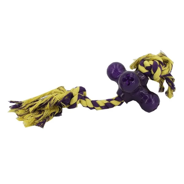 Der Treat Dispensing Jack setzt sich zusammen aus einem dicken, robusten Baumwollseil und einem gummierten, bissfesten Körper. Dadurch ist er ein ideales Wurf-, Kau- und Zerrspielzeug. Der Körper ist befüllbar mit den Starmark Interactive Treats oder auch anderen Leckerlis. Durch gezieltes Kauen auf dem Gummi kann sich der Hund die Leckereien erarbeiten. Zerren, schütteln, werfen, kauen! Der Treat Dispensing Jack ist für Hunde aller Größen geeignet.