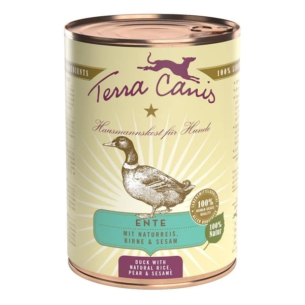 Entenherzen ( 42%), Entenleber ( 11%), Birne (7%), Naturreis (7%), Pfirsich, Fenchel (7%), Gurke, Himbeeren (1,5%),rote Beete (7%), Leinöl, Sesamschrot (0,5%), Eierschalenpulver(0,5%), Kreuzkümmel, Majoran, Thymian, Bierhefe; Seealge ( 04%), Andensalz, Mineralerde.