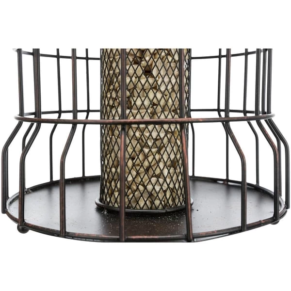 Der Erdnuss-Futterspender lässt sich einfach durch den aufklappbaren Deckel befüllen und das Schutzgitter ermöglicht kleinen Vögeln das Fressen in Ruhe.