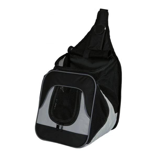 Wenn Sie Ihren Liebling in dieser Fronttasche transportieren hat das einige Vorteile. Sie haben die Hände frei wie bei einem Rucksack aber dabei Ihr Tier immer im Blick. Das Tragen ist für Sie weniger belastend als bei einer normalen Katzen- oder Hunde-Transporttasche. Die schwarz/graue Bauchtrage ist von oben und von vorne zu öffnen und hat eine integrierte Kurzleine.