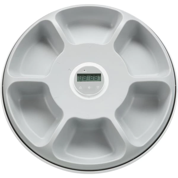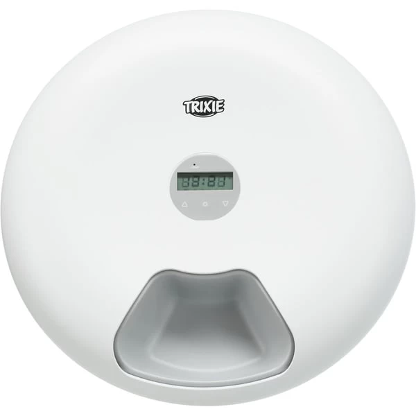 Bei dem Trixie Futterautomat TX5+1 lässt sich die Uhrzeit für die Fütterung, egal ob Trocken- oder Nassfutter, einfach programmieren für 6 Mahlzeiten à 180 ml. Ein Einklemmschutz verhindert Verletzungen der Tierpfoten während der Futterautomat rotiert. Die Futterschalen können im Anschluss bequem in der Spülmaschine gereinigt werden.
