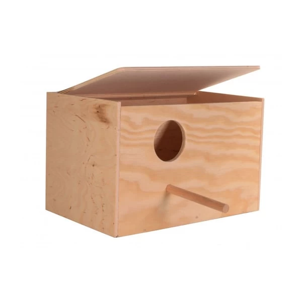 Der Nistkasten besitzt eine Landestange und ist durch seinen aufklappbaren Deckel mühelos zu reinigen.