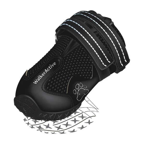 Der Pfotenschutz Walker Aktive von Trixie bietet Ihrem Vierbeiner dank der robusten Profilsohle (PVC) rutschfesten Halt. Zusätzlich ist das Mesh-Material atmungsaktiv und sorgt für hohen Tragekomfort. Der Pfotenschutz hält ebenfalls Wunden und Verbände trocken und sauber, senkt das Infektionsrisiko und unterstützt somit die Heilung. Er bietet außerdem optimalen Schutz auf steinigem Untergrund, Asphalt oder heißem Sand. Gleichzeitig schützt er im Winter vor Streusalz und Splitt. Geliefert werden in einer Packung immer 2 Stück, sodass die Pfoten paarweise geschützt werden können. Zur Pflege der Pfote empfehlen wir unsere Pfotenpflege-Creme oder das Pfotenpflege-Spray.