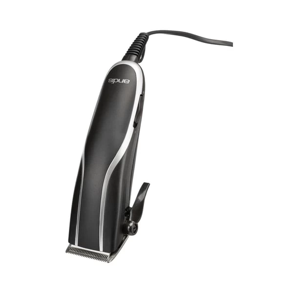 Robuste Schermaschine mit 4 Aufsteckkämmen. Das Gerät hat einen laufruhigen Pivotmotor.