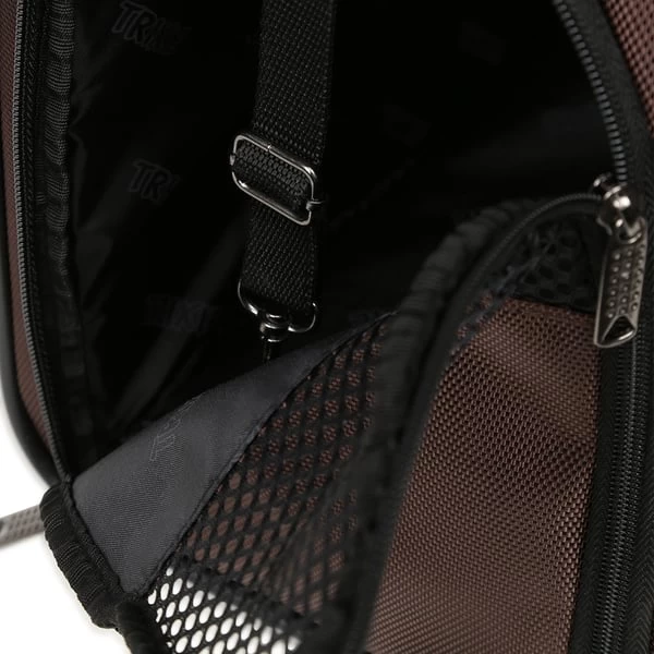 Der extra weich gepolsterte Rucksack lässt sich bequem von vorne und seitlich öffnen. Vorne sind zwei separate Fronttaschen angebracht. Dank der stufenlosen verstellbaren Gurte an Taille und Schulte wird ein hoher Tragekomfort garantiert. Die reflektierende Paspel sorgt auch bei Dunkelheit für gute Sichtbarkeit. Zur Sicherheit des Tieres ist eine Kurzleine im Inneren integriert, die das Herausspringen verhindert und die Netzeinsätze sorgen für eine gute und angenehme Luftzirkulation. Durch die Laschen auf der Ruckseite ist eine Befestigung am Trolley möglich. Die gepolsterte Bodenplatte ist zusätzlich herausnehmbar.