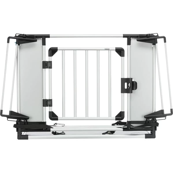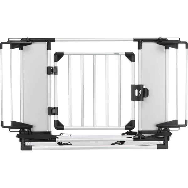 Das Universal-Heckgitter von Trixie wird direkt hinter der Heckklappe platziert und eignet sich für fast alle Fahrzeugtypen. Die Breite lässt sich stufenlos durch verstellbare Seitenteile anpassen. Die Wickelung des Gitters ist ebenfalls verstellbar dadurch kann der gesamte Kofferraum als Liegefläche genutzt werden. Falls das Gitter nicht benötigt wird, kann es einfach eingeklappt werden. Die enthaltene Liegematte ist bei 30 Grad in der Maschine waschbar.