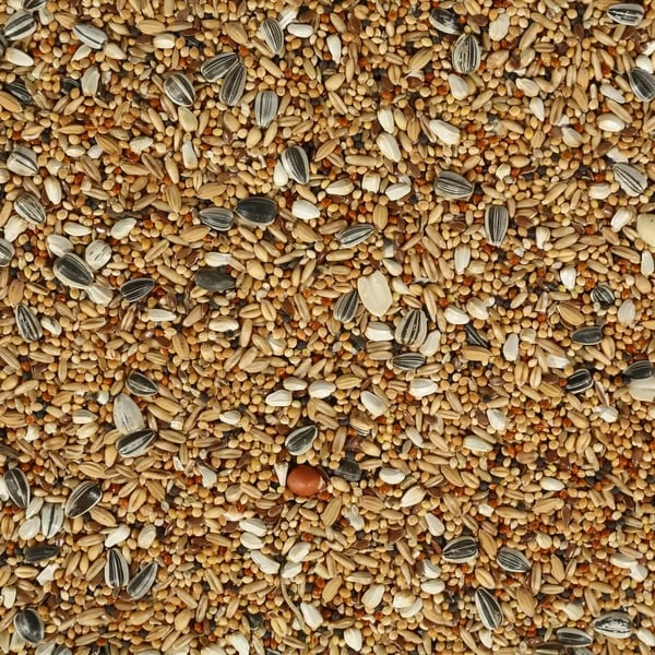 Plata Hirse 32%, Rote Hirse 10%, Kanariensaat 9%, Haferkerne 9%, gestreifte Sonnenblumenkerne 6%, Weizen 5%, Cardy 5%, Silberhirse 4%, Rübsen 4%, Hanfsaat 4%, weiße Sonnenblumenkerne 3%, Leinsamen 3%, Paddy-Reis 2,5%, enthülste Erdnüsse 1,5%, Nigersamen 1%, Japan Hirse 1%