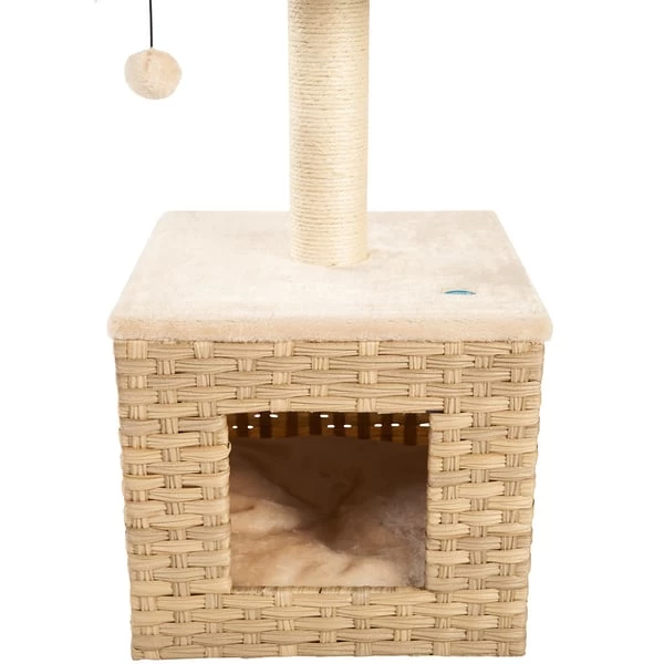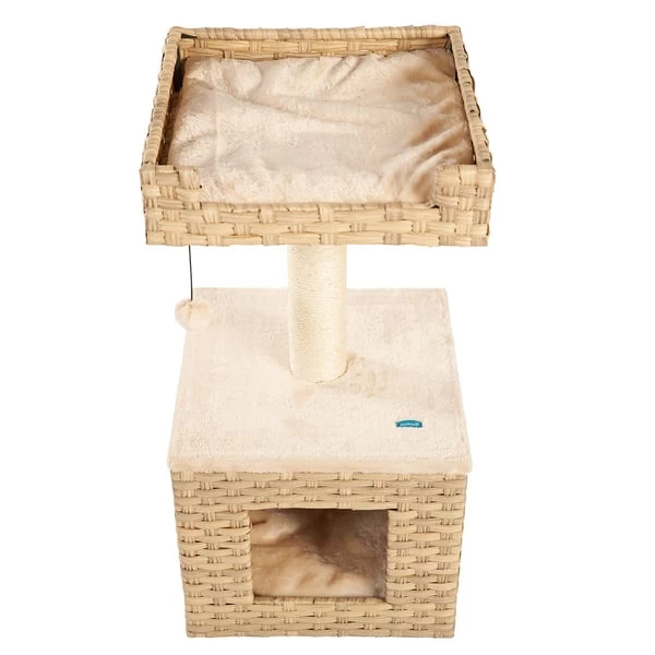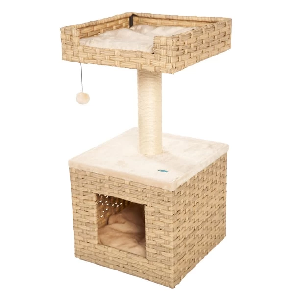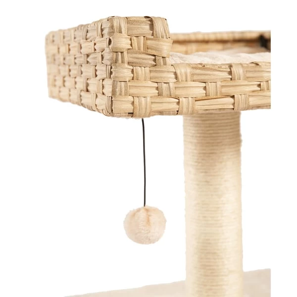Der ZooRoyal Kratzbaum Gili ist ein schöner, stabiler Kratzbaum im natürlichen Look, der deinen Haustiger mit vielfältigen Möglichkeiten zum Klettern, Spielen, Beobachten und Schlafen begeistern wird. Der cremefarbene Kratzstamm aus Sisal lädt zum Krallenwetzen ein. Danach kann deine Katze mit dem Spielzeug Ball am Seil spielen und sich anschließend zum Ausruhen in die Höhle oder auf die gemütliche Aussichtplattform zurückziehen. Die Höhle, sowie das Liegenest, haben ein herausnehmbares Kissen, welches bei 30 Grad in der Maschine gewaschen werden kann.