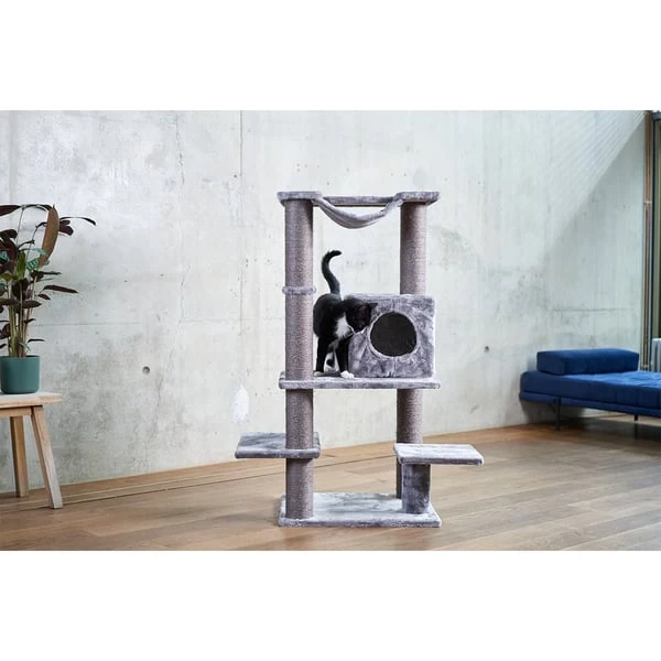 Bei dem modernen ZooRoyal Kratzbaum Leni in Grau bleiben keine Wünsche deiner Katze offen: Er verfügt über viele Liegeflächen, einer kuscheligen Höhle, einer Hängematte und vielen Kratzflächen aus natürlichem Sisal. Nach dem Krallen wetzen, Klettern und Spielen kann sich deine Katze auf den beiden großen Liegeflächen oder in der kuscheligen Höhle entspannt zurückziehen und ausruhen.